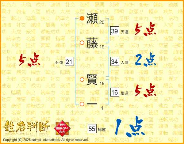 瀬藤賢一さんの天運は39画の5点!