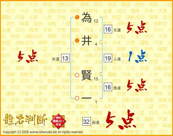 為井賢一さんの総運は32画の5点!