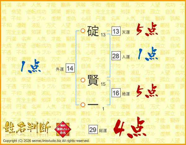 碇賢一さんの総運は29画の4点!