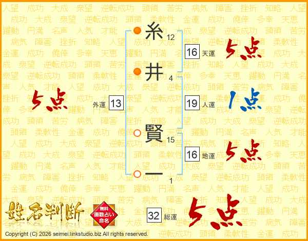 糸(12画)井(4画) 賢(15画)一(1画)