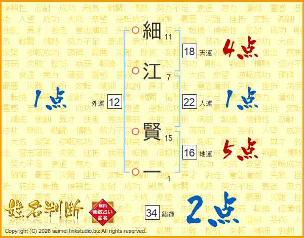細江賢一さんの総運は34画の2点!