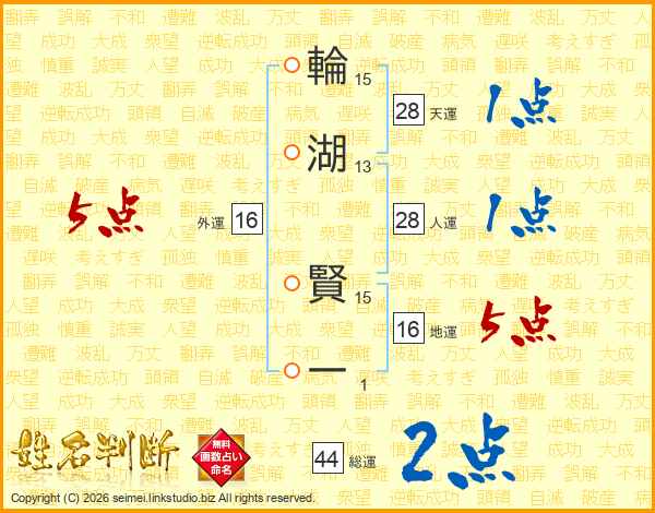 輪湖賢一さんの総運は44画の2点!