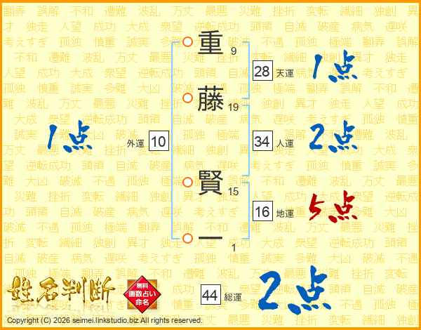 重藤賢一さんの総運は44画の2点!