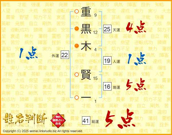 重黒木賢一さんの総運は41画の5点!