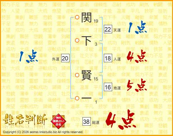 関下賢一さんの総運は38画の4点!