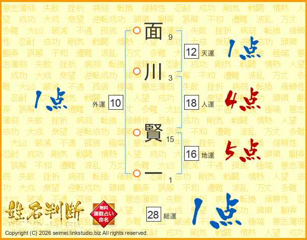 面川賢一さんの総運は28画の1点!