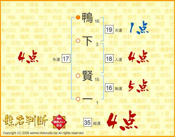 鴨下賢一さんの外運は17画の4点!