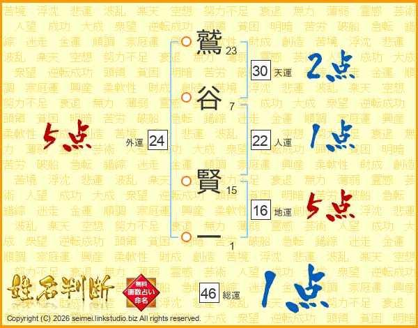 鷲谷賢一さんの総運は46画の1点!