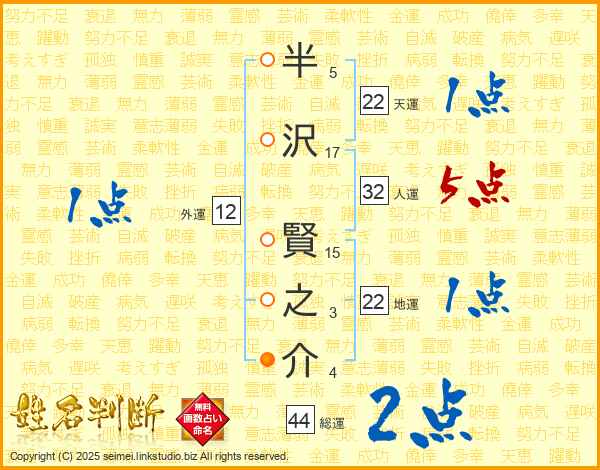 半沢賢之介さんの地運は22画の1点!