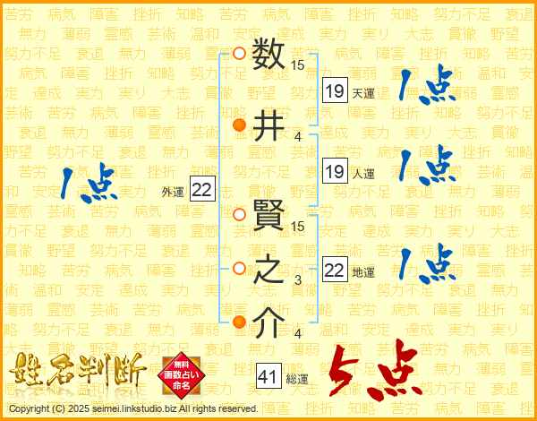 数(15画)井(4画) 賢(15画)之(3画)介(4画)