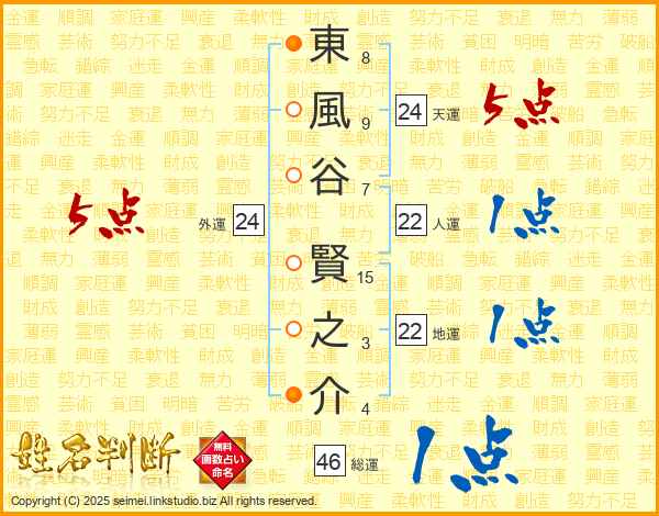 東風谷賢之介さんの外運は24画の5点!