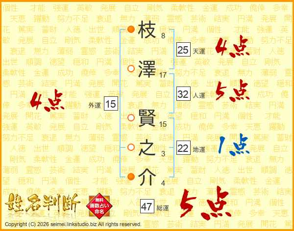 枝澤賢之介さんの総運は47画の5点!