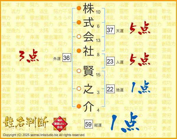 株式会社賢之介さんの天運は37画の5点!