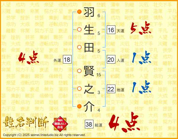 羽生田賢之介さんの総運は38画の4点!