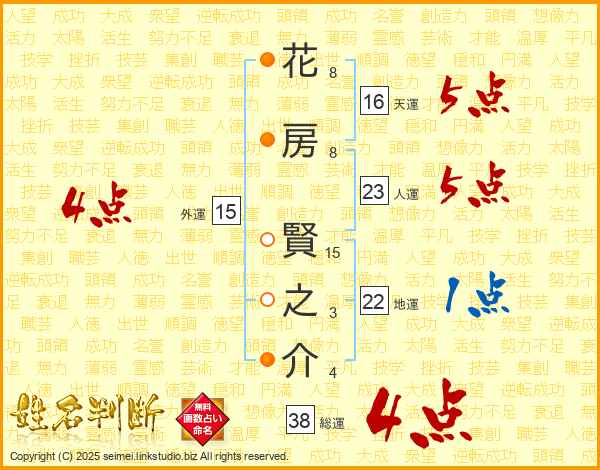 花房賢之介さんの総運は38画の4点!