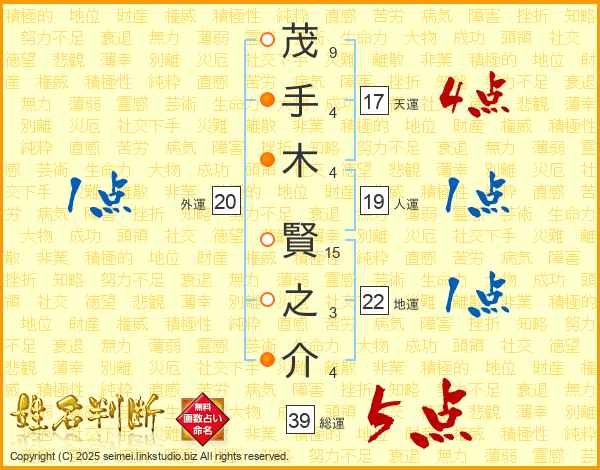 茂(9画)手(4画)木(4画) 賢(15画)之(3画)介(4画)