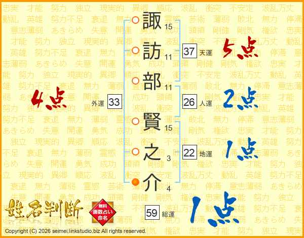 諏訪部賢之介さんの外運は33画の4点!