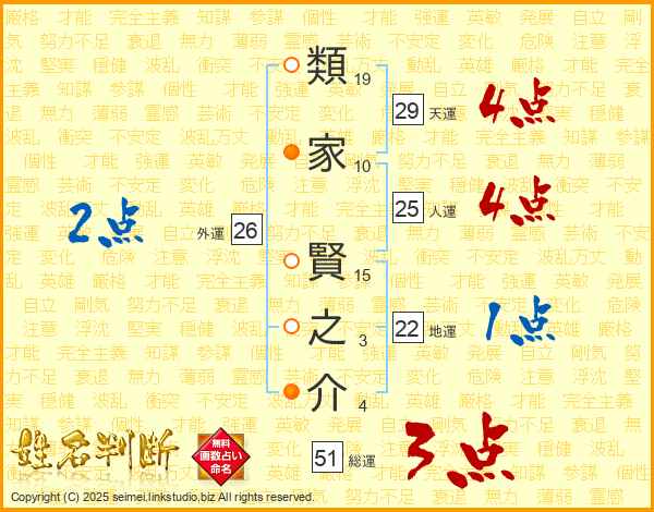 類家賢之介さんの人運は25画の4点!