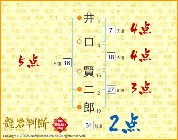 井(4画)口(3画) 賢(15画)二(2画)郎(10画)