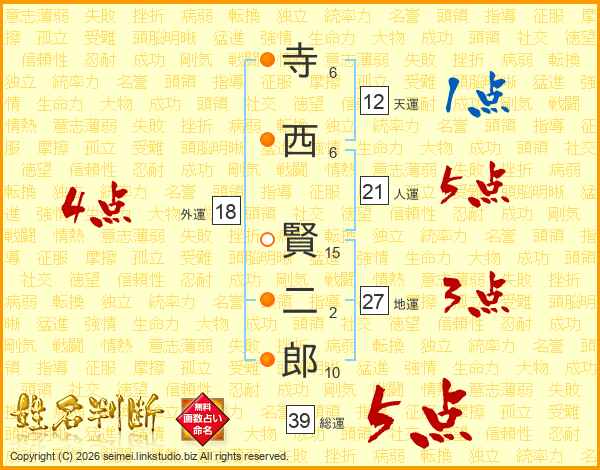 寺西賢二郎さんの人運は21画の5点!