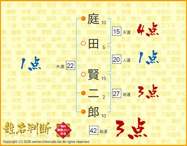 庭田賢二郎さんの総運は42画の3点!