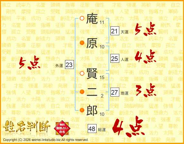 庵原賢二郎さんの総運は48画の4点!