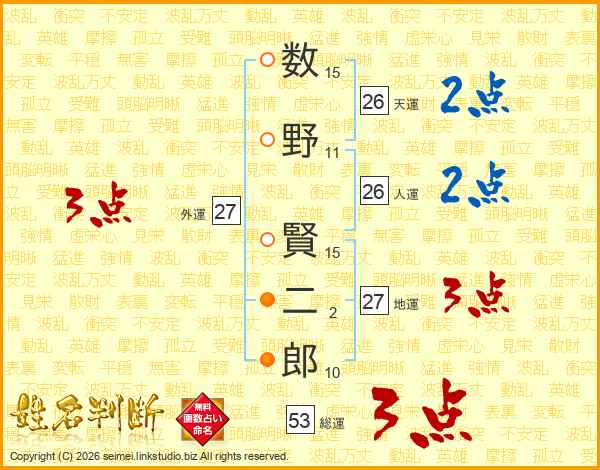 数野賢二郎さんの天運は26画の2点!