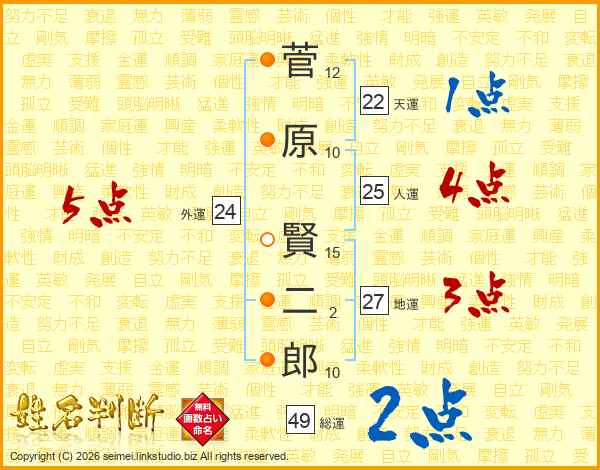 菅原賢二郎さんの人運は25画の4点!