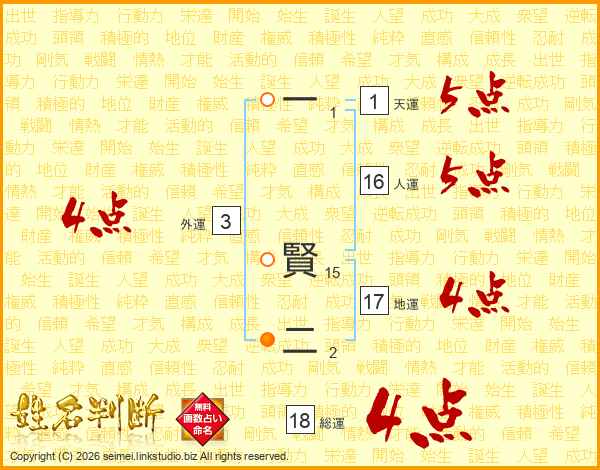 一賢二さんの総運は18画の4点!