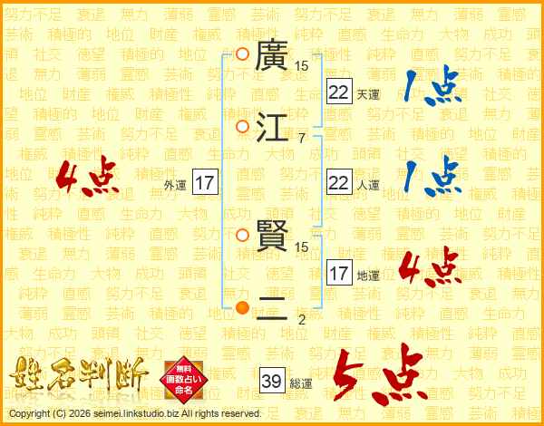 廣江賢二さんの総運は39画の5点!
