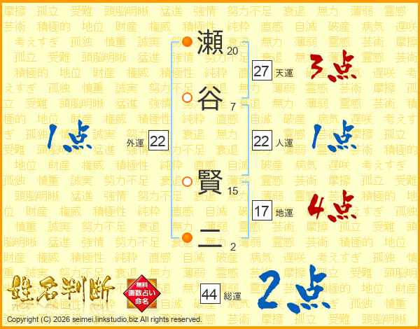 瀬谷賢二さんの総運は44画の2点!