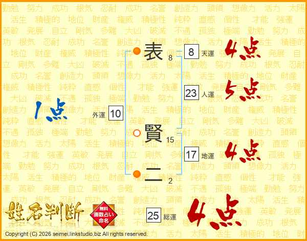 表賢二さんの総運は25画の4点!
