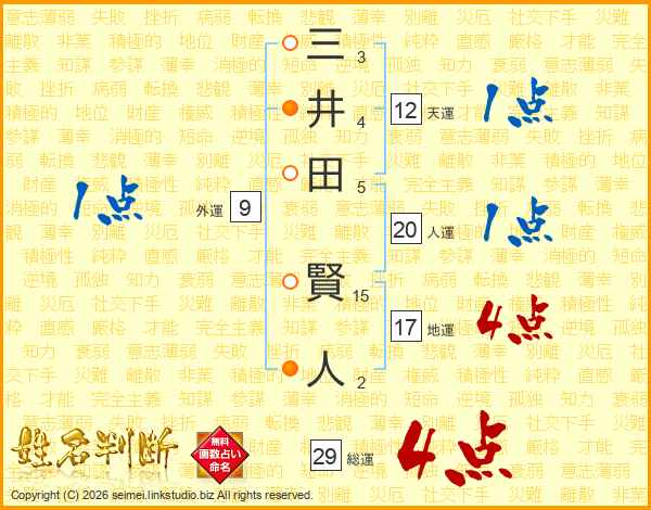 三井田賢人さんの総運は29画の4点!