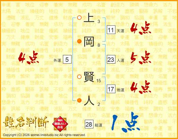 上岡賢人さんの総運は28画の1点!