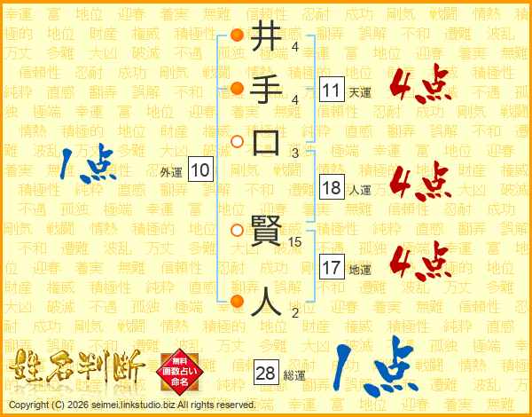 井(4画)手(4画)口(3画) 賢(15画)人(2画)