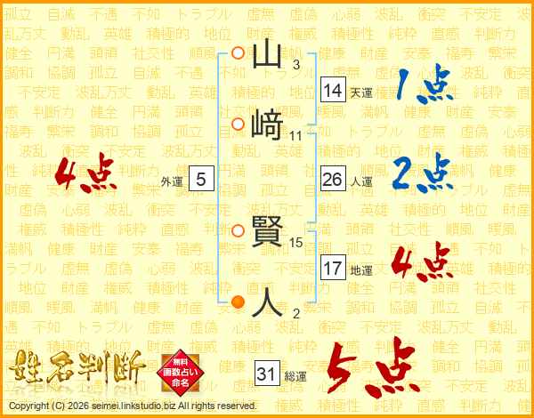 山﨑賢人さんの総運は31画の5点!