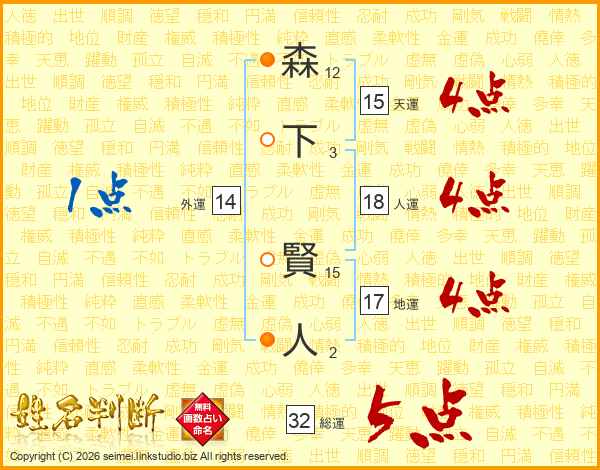 森下賢人さんの総運は32画の5点!