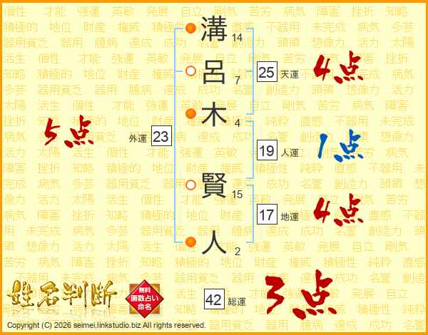 溝呂木賢人さんの外運は23画の5点!
