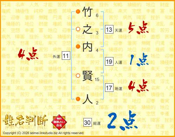 竹之内賢人さんの外運は11画の4点!