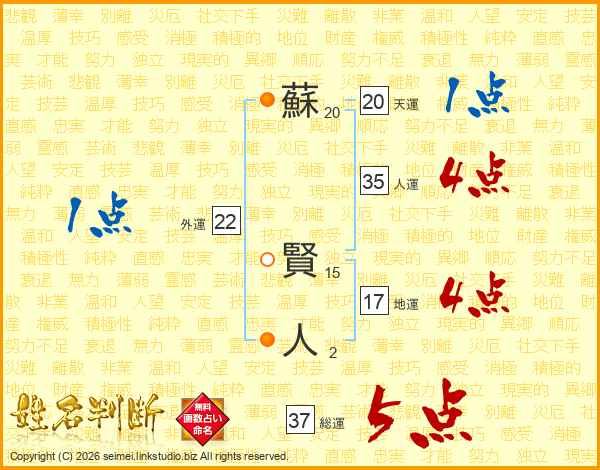 蘇(20画) 賢(15画)人(2画)