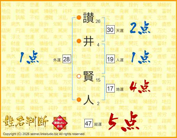 讃(26画)井(4画) 賢(15画)人(2画)