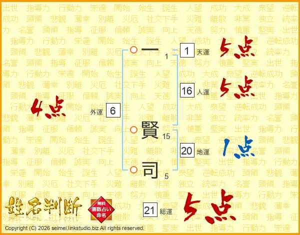 一賢司さんの総運は21画の5点!