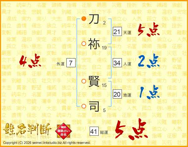 刀(2画)祢(19画) 賢(15画)司(5画)