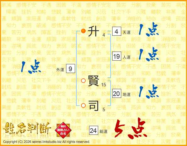 升(4画) 賢(15画)司(5画)
