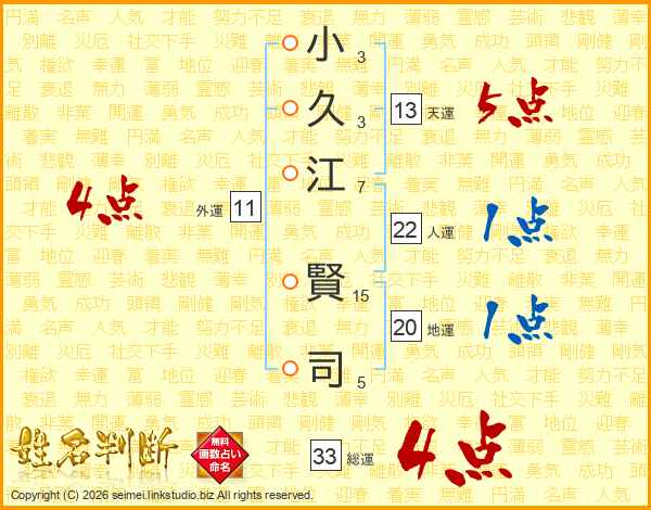 小久江賢司さんの総運は33画の4点!