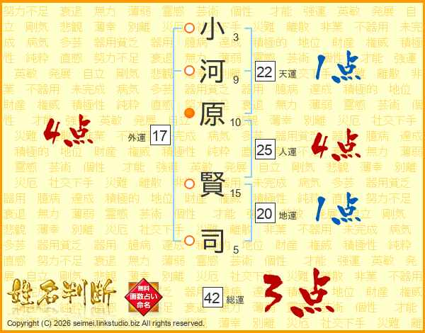 小(3画)河(9画)原(10画) 賢(15画)司(5画)
