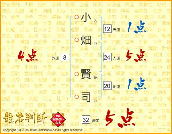 小畑賢司さんの総運は32画の5点!