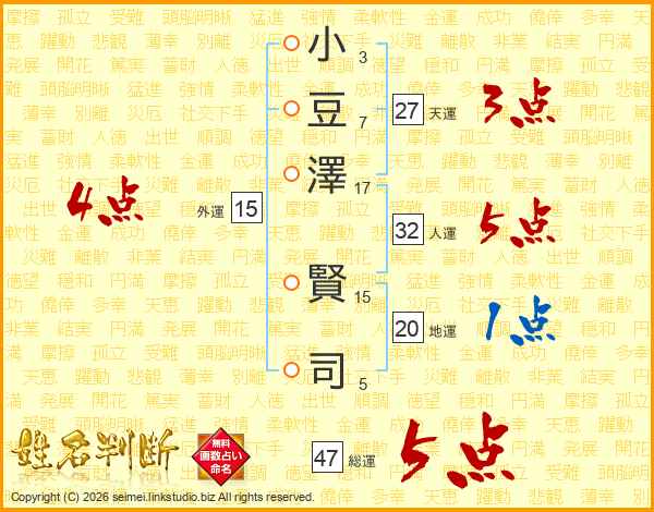 小豆澤賢司さんの総運は47画の5点!