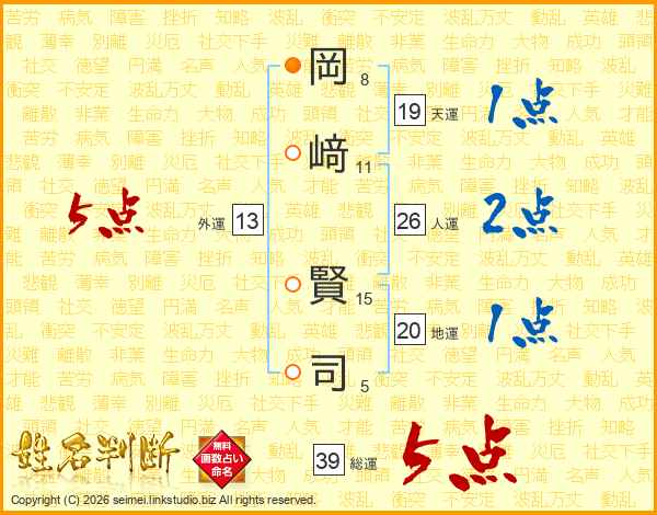 岡﨑賢司さんの総運は39画の5点!