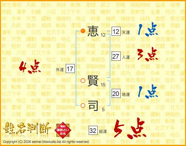 恵賢司さんの総運は32画の5点!